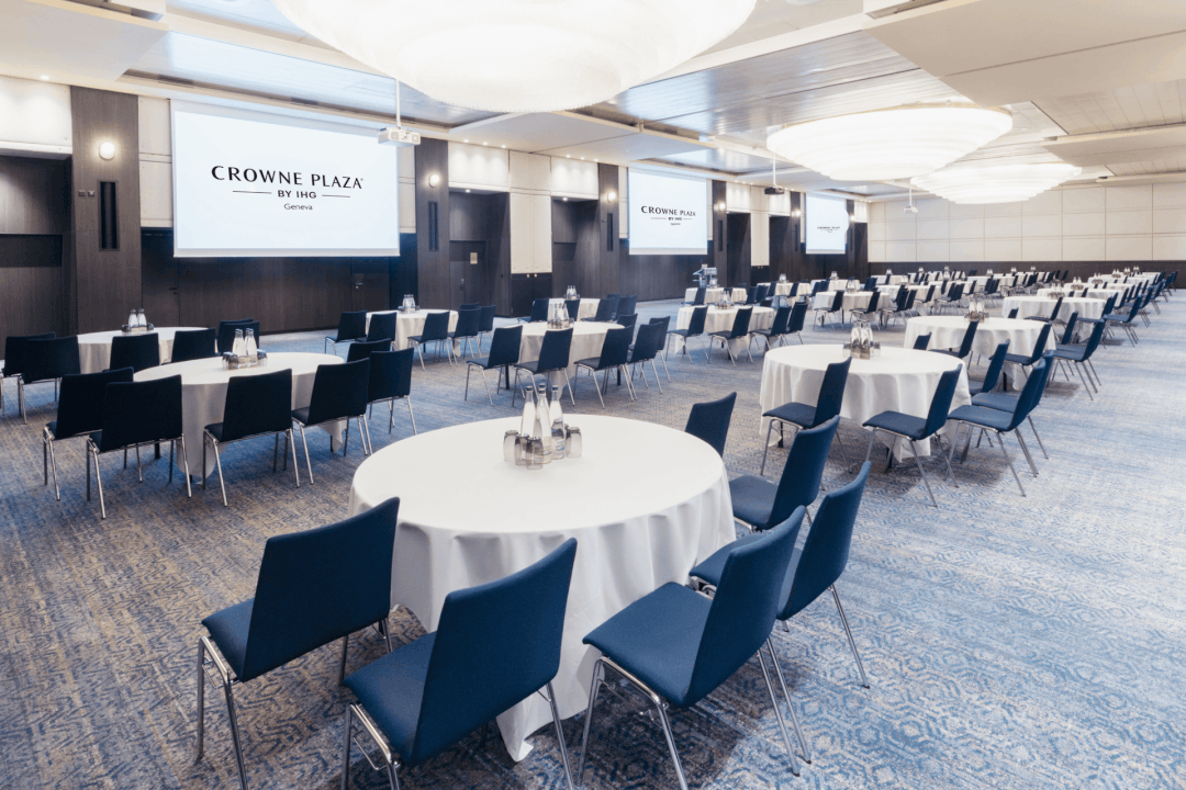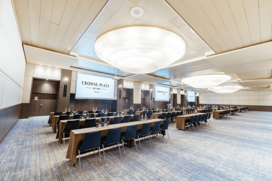 Discover the International Room, a versatile conference space in Geneva located at the Crowne Plaza Geneva, perfectly suited for hosting large-scale conventions, conferences, and professional events.